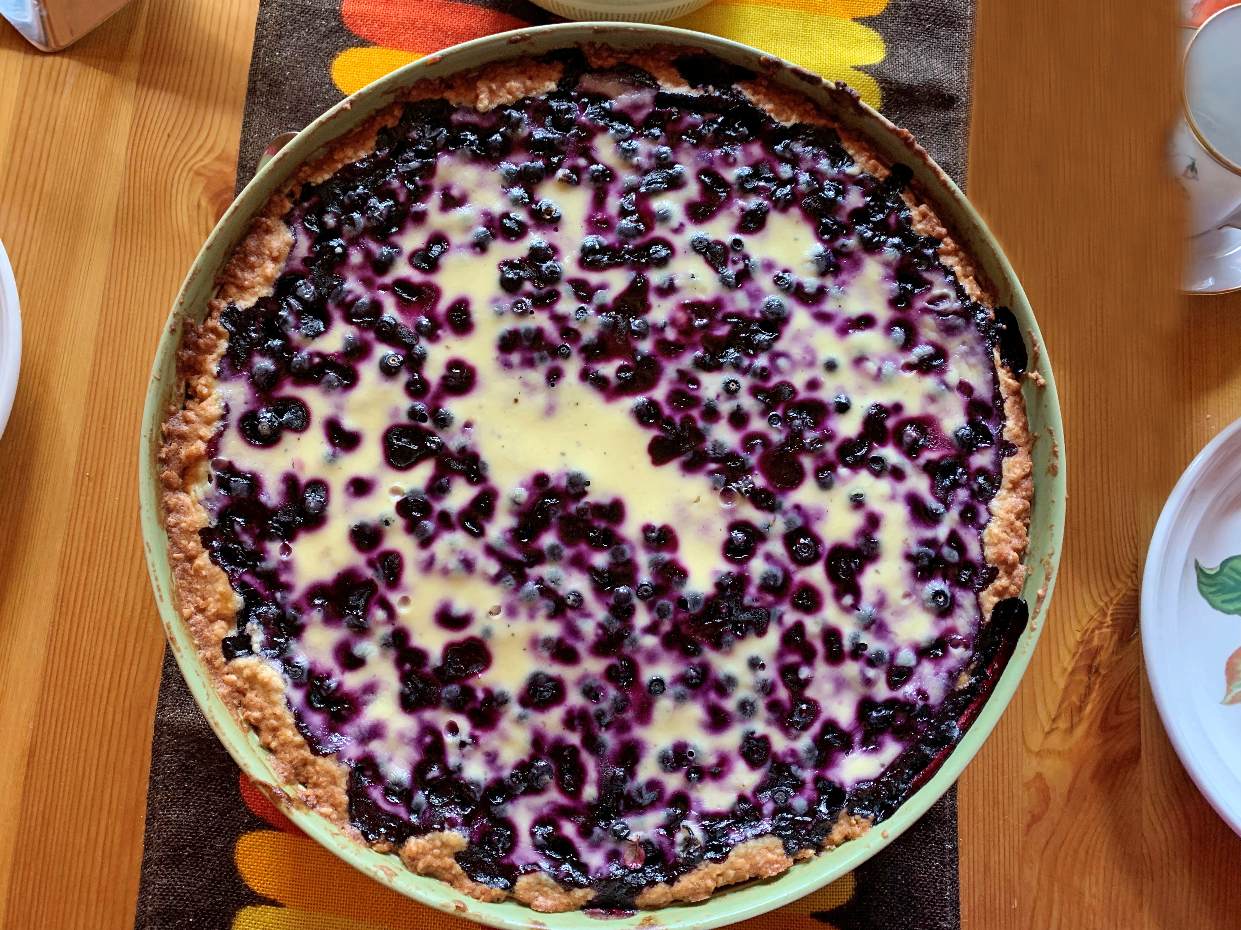 - 3–4 dl Heidelbeeren auf den Teig geben