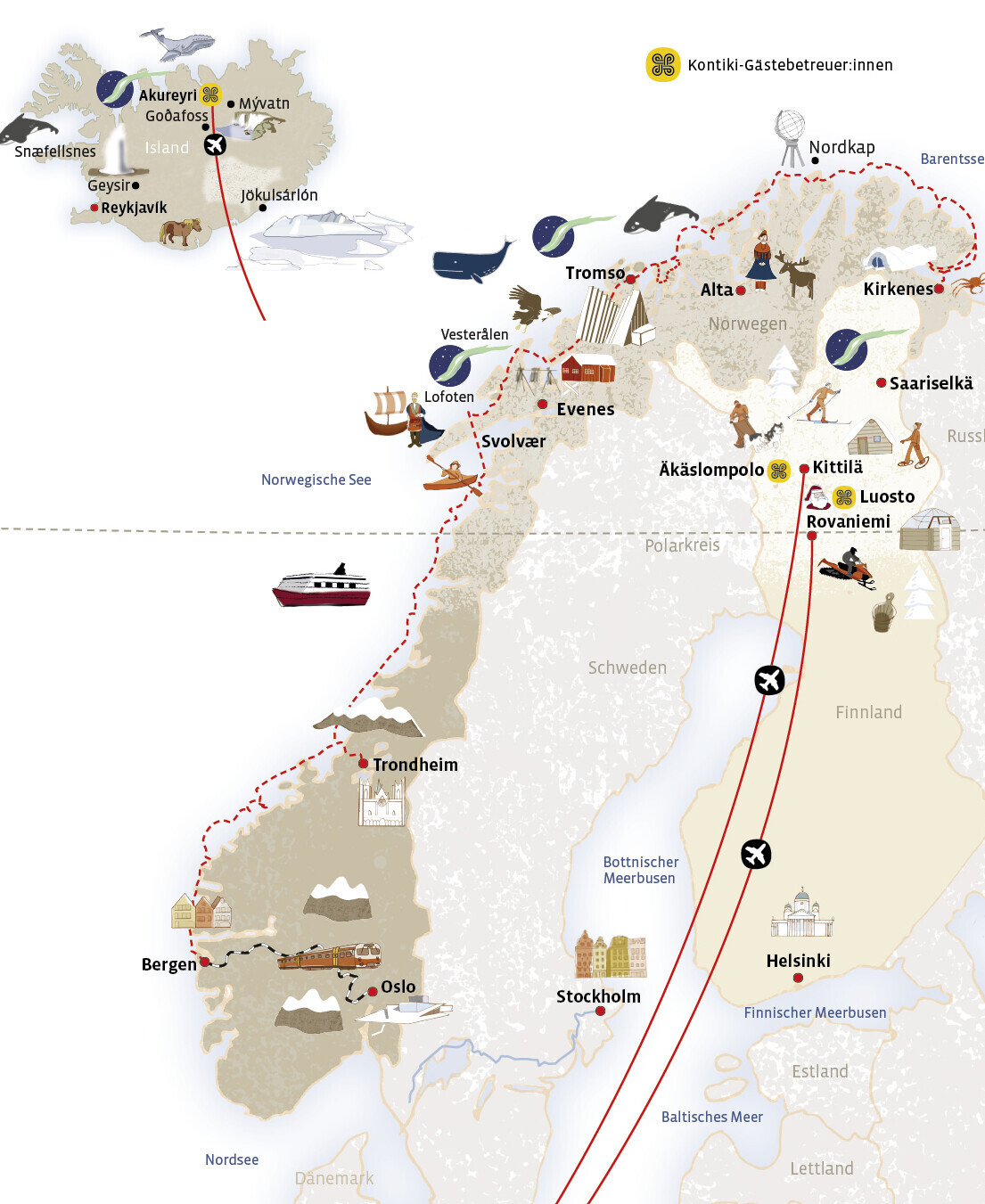 Während den Hauptsaisons im Sommer und Winter haben wir an diversen Standorten im hohen Norden deutschsprechende Kontiki-Mitarbeitende, die für alle Anliegen unserer Gäste und besonders für persönliche Tipps und Empfehlungen die erste Anlaufstelle sind. Wann immer Sie Fragen oder besondere Wünsche haben - unsere Gästebetreuer:innen in Finnisch-Lappland (Sommer und Winter), auf den Lofoten (Sommer) sowie in Nordisland (Winter) sind jederzeit erreichbar.